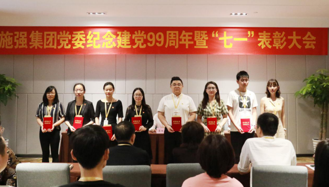 2020年7月1日,施强集团党委纪念建党99周年暨“七一”表彰大会在施强广场隆重举行。集团党委书记、董事长虞陆平,集团党委委员以及各党(总)支全体党员,以现场和乐课网两种形式参加了大会。大会由集团党委委员顾晓倩同志主持。