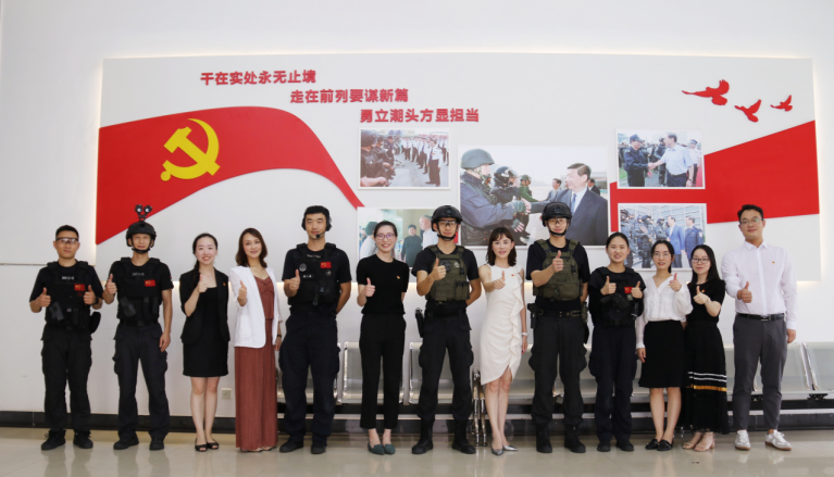 在市公安局特警支队机动一大队负责人的带领下,我们参观了警史馆和安检排爆研究中心。特警队员“听党指挥,能打胜仗,作风优良”的战斗精神、甘于牺牲的奉献精神、对党绝对忠诚的坚定信念让我们深受感动。